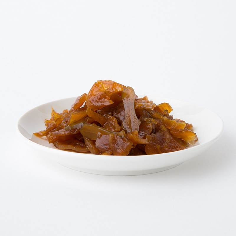 割干大根をはじめとする、昔ながらの7種類の国産野菜原料(大根・なす・なた豆・蓮根・かぶ・しそ・うり)を使用し、鰹の風味がきいた風味豊かな甘口の福神漬です。