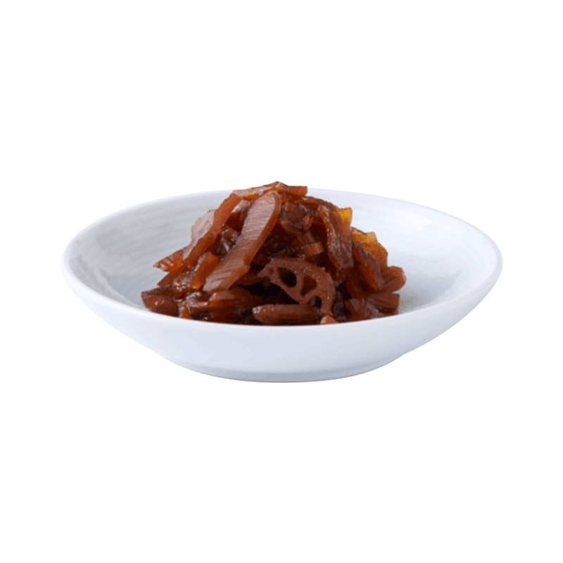 割干大根を使用した7種類の国産原料を伝統の重ね漬け製法でじっくりと漬け込んだ醤油の風味香る福神漬です。